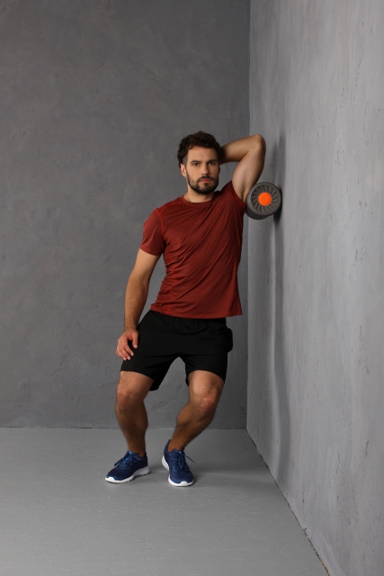 Übungen zur Dehnung und Massage der oberen Rückenmuskulatur mit der MaxiRoll® kannst du sowohl im Liegen als auch stehend an einer Wand ausführen. Liegend bewegst du die Rückenmuskulatur langsam in kreisenden Bewegungen über die Rolle. Durch das Abstützen der Arme oder des nicht aktiven Beines kannst du den Druck auf die Faszienrolle variieren und gleichzeitig die Stabilität des Rumpfes erhöhen.
