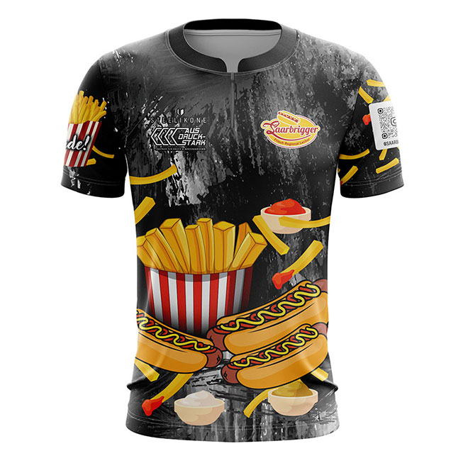Mit dem Dart Trikot Pro Damen können sie ein professionelles Funktions-Poloshirt 100% frei gestalten. Das Polo-Shirt ist aus einem Dry Touch Gewebe hergestellt und bietet dadurch ein extra Maß an Leistungsfähigkeit. Seine mesh-artige Oberfläche trägt sich angenehm auf der Haut und ist zudem extrem atmungsaktiv, feuchtigkeitsregulierend und schnell trocknend. Speziell Motive mit Farbverläufen und matten Farben wirken auf diesem Material besonders detailliert. Das Poloshirt ist mit Stehkragen und Reißverschluss ausgestattet. Die Logos und das Shirt Design werden nach ihren exakten Vorgaben umgesetzt. Das Polo kann vollflächig und mit fotorealistischen Motiven bedruckt werden. Dabei sind Ihren gestalterischen Möglichkeiten keine Grenzen gesetzt. Das Besondere: Der Farbstoff wird in den Trägerstoff eingedampft (sublimiert), so dass die Atmungsaktivität und Funktionalität des Stoffes nicht durch Aufdrucke beeinflusst werden. Profitieren Sie von unserer flexiblen Produktion ohne Mindestbestellmenge, der permanenten Verfügbarkeit und den schnellen Lieferzeiten.