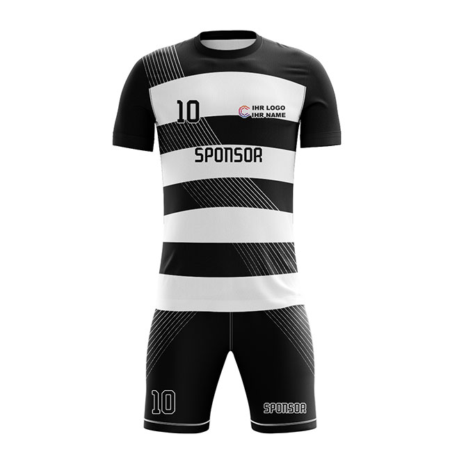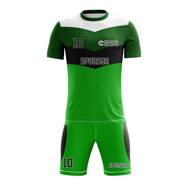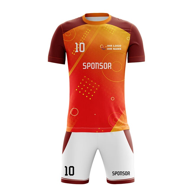 Mit dem Fußball Trikot ProHerren können Sie ein professionelles Fußballtrikot komplett frei gestalten. Das Fußball Jersey ist aus Dry Touch Gewebe hergestellt und bietet dadurch ein extra Maß an Leistungsfähigkeit. Seine mesh-artige Oberfläche trägt sich angenehm auf der Haut und ist zudem extrem atmungsaktiv, feuchtigkeitsregulierend und schnell trocknend. Speziell Motive mit Farbverläufen und matten Farben wirken auf diesem Material besonders detailliert. Ergänzend verfügt dieses Fußball-Trikot über seitlich eingesetzte Panele, die die Passform optimieren und separat gestaltbar sind. Durch die verwendeten Raglan Ärmel bietet das Shirt ein zuätzlich eine optimale Bewegungsfreiheit im Schulter Bereich. Optional ist das Trikot auch mit V-Ausschnitt bestellbar. Die Logos und das Shirt Design werden nach ihren exakten Vorgaben umgesetzt. Das Jersey kann vollflächig und mit fotorealistischen Motiven bedruckt werden. Dabei sind Ihren gestalterischen Möglichkeiten keine Grenzen gesetzt. Das Besondere: Der Farbstoff wird in den Trägerstoff eingedampft (sublimiert), so dass die Atmungsaktivität und Funktionalität des Stoffes nicht durch Aufdrucke beeinflusst werden. Profitieren Sie von unserer flexiblen Produktion ohne Mindestbestellmenge, der permanenten Verfügbarkeit und den schnellen Lieferzeiten.