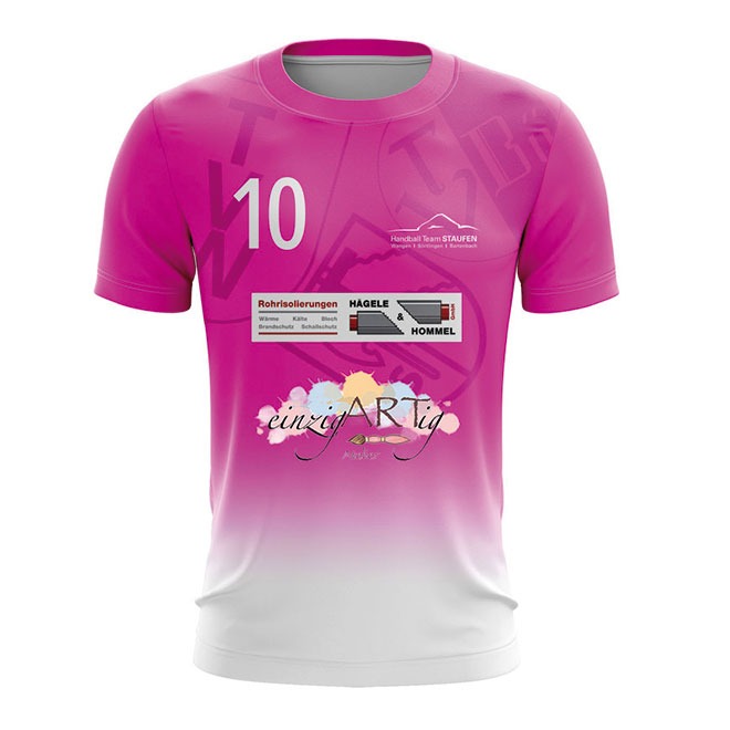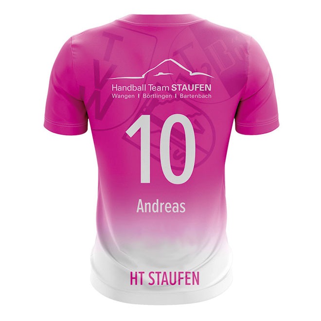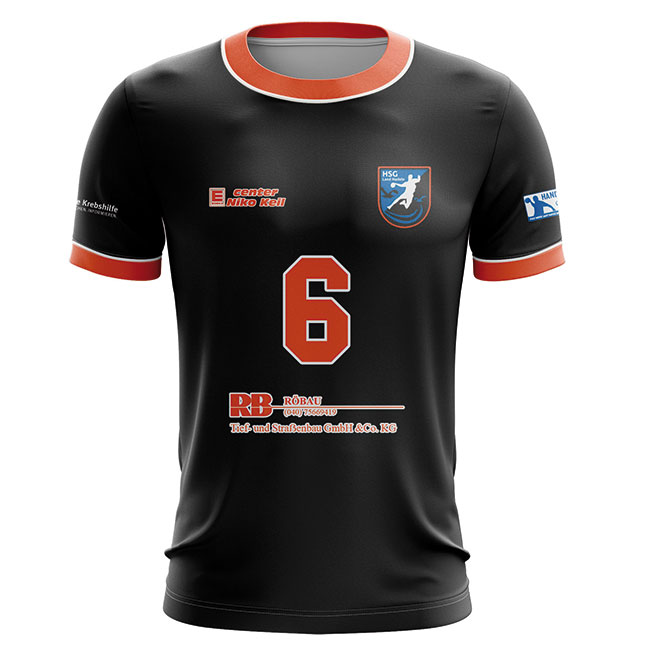 Mit dem Handball Trikot ProHerren können Sie ein professionelles Handball Trikot komplett frei gestalten. Das Handball Jersey ist aus Polyester Gewebe mit Elastan Anteil hergestellt und bietet dadurch ein extra Maß an Leistungsfähigkeit. Seine mesh-artige Oberfläche trägt sich angenehm auf der Haut und ist zudem extrem atmungsaktiv, feuchtigkeitsregulierend und schnell trocknend. Speziell Motive mit Farbverläufen und matten Farben wirken auf diesem Material besonders detailliert. Ergänzend verfügt dieses Handballtrikot über seitlich eingesetzte Panele, die die Passform optimieren und separat gestaltbar sind. Durch die verwendeten Raglan Ärmel bietet das Shirt ein zuätzlich eine optimale Bewegungsfreiheit im Schulter Bereich. Optional ist das Trikot auch mit V-Ausschnitt bestellbar. Die Logos und das Shirt Design werden nach ihren exakten Vorgaben umgesetzt. Das Jersey kann vollflächig und mit fotorealistischen Motiven bedruckt werden. Dabei sind Ihren gestalterischen Möglichkeiten keine Grenzen gesetzt. Das Besondere: Der Farbstoff wird in den Trägerstoff eingedampft (sublimiert), so dass die Atmungsaktivität und Funktionalität des Stoffes nicht durch Aufdrucke beeinflusst werden. Profitieren Sie von unserer flexiblen Produktion ohne Mindestbestellmenge, der permanenten Verfügbarkeit und den schnellen Lieferzeiten.