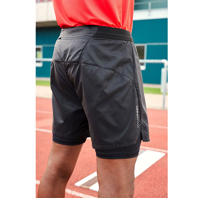 Dünne, elastische Webstoffqualität außen und eingearbeitete, enganliegende Innenhose aus angenehm weicher, elastischer Jerseyqualität mit luftdurchlässiger Struktur